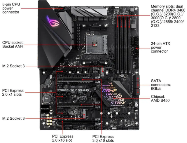 A ASUS ROG STRIX B450-F GAMING é uma placa-mãe ATX robusta e fiável, desenvolvida para utilizadores que procuram estabilidade, desempenho consistente e compatibilidade ampla com processadores AMD Ryzen das séries 3000, 4000 e 5000 (incluindo modelos como Ryzen 5 5600X, 5500, 3600, 2600 e Ryzen 7/9).